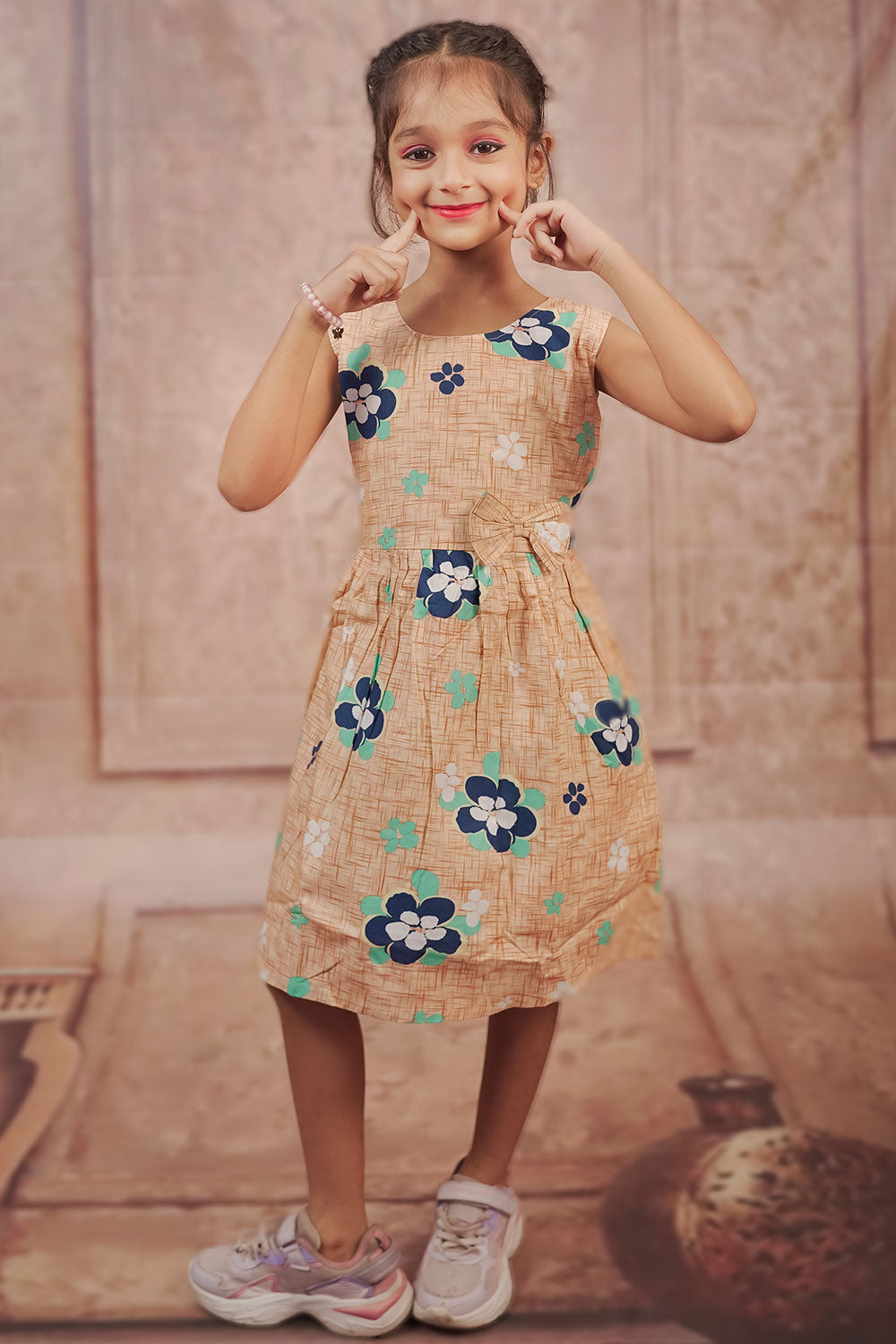 Pariari Girls Sleeveless Beige Heart & Bubble Bow Frock