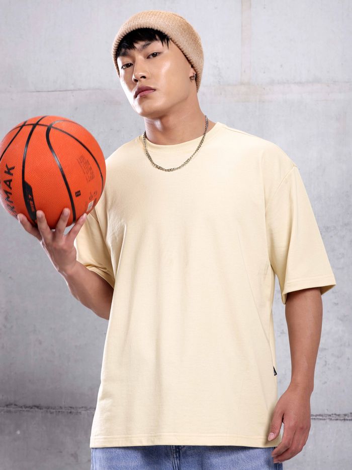 Product Highlights  Fabric Looper Neck Round Neck Pattern Solid Sleeve Half-sleeves Fit Oversized-fit...