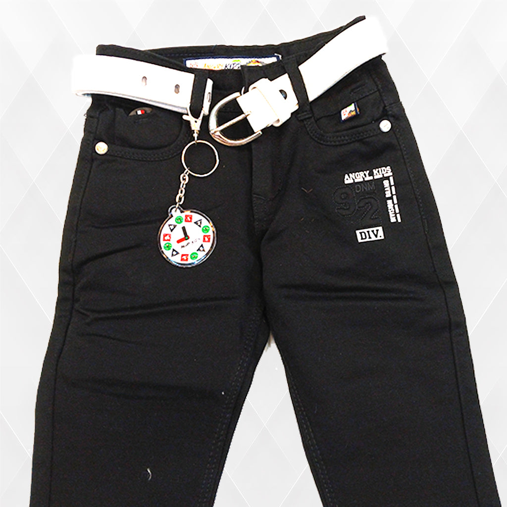 Pariari Boys Stylish Black Slim-Fit Jeans with Belt & Keychain