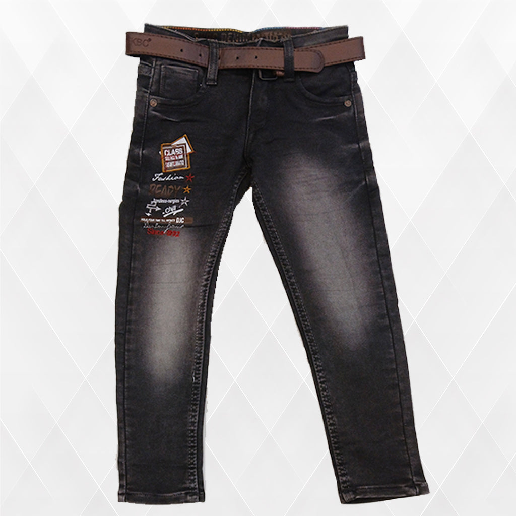 Pariari Boys Stylish Slim-Fit Denim Jeans with Belt & Trendy Patches
