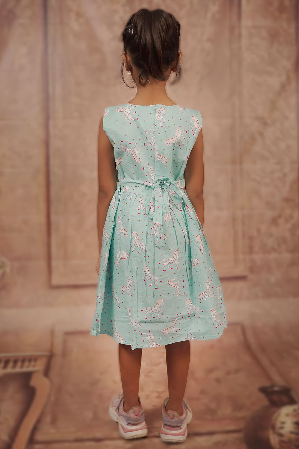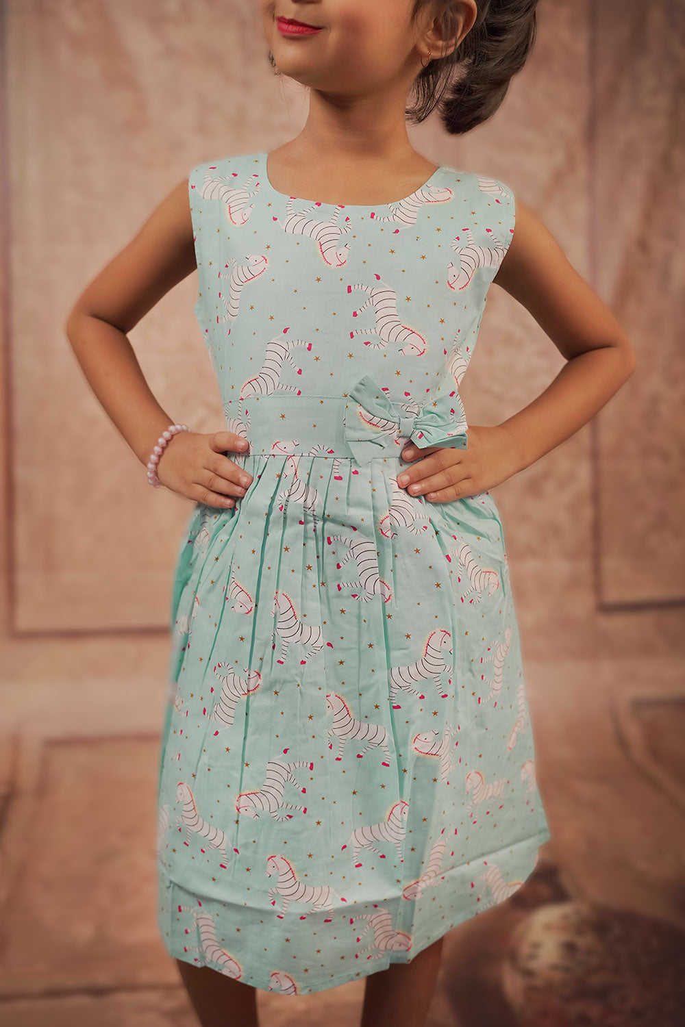 Pariari Girls Sleeveless Sky Blue Coloured Zebra Cotton Frock