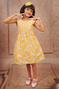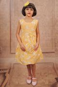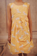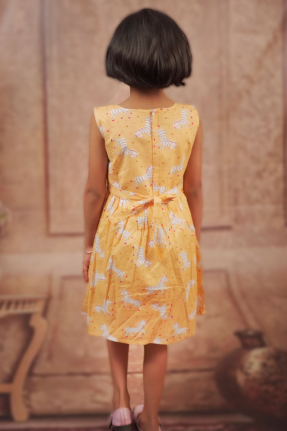 Pariari Girls Sleeveless Yellow Coloured Zebra Cotton Frock
