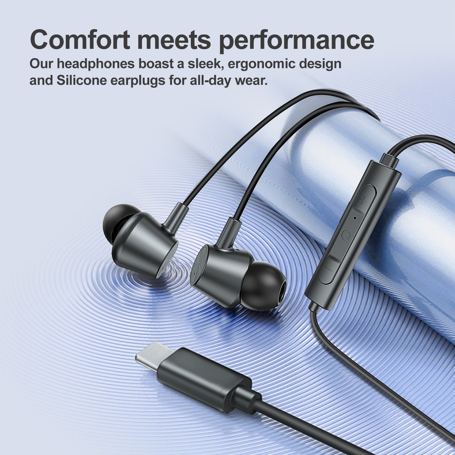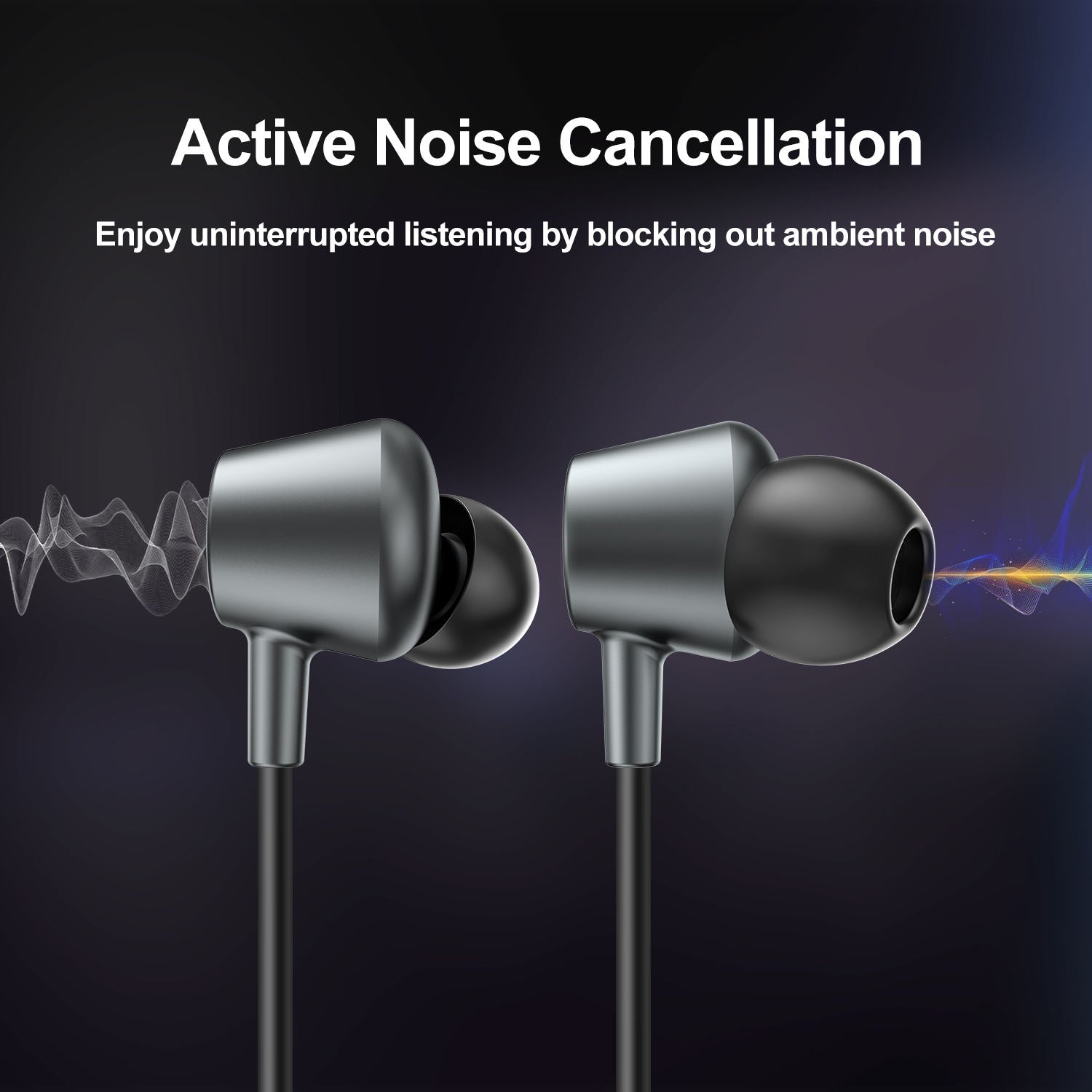 Active Noise Cancelling Bass Stereo Earbuds Type-C Wired Sports Headphones With Mic Music Earphones & Headphones