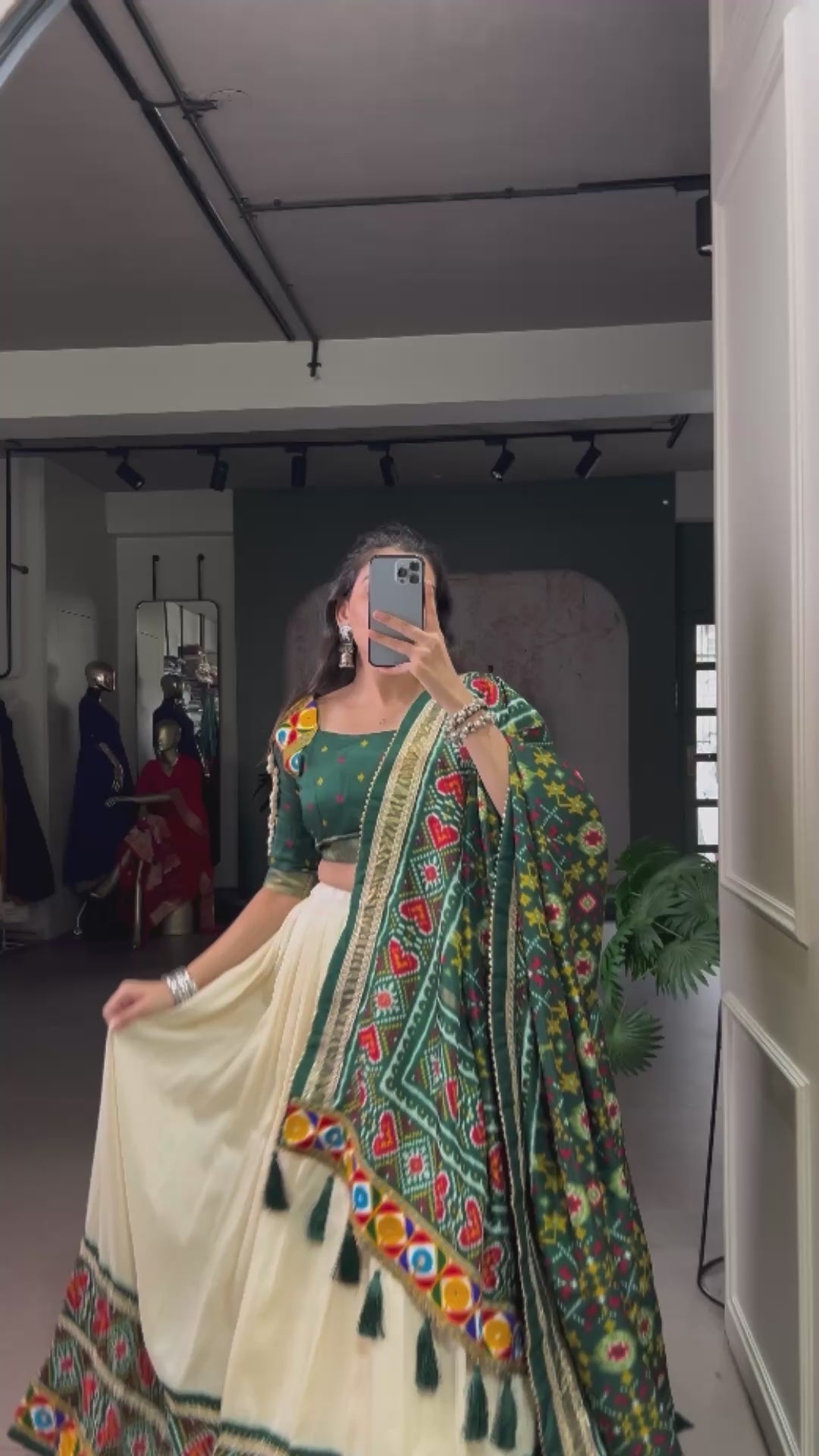 Lehenga Work : Patola Print With Foil Work And Real Mirror Gamthi Work With Lace Touch Up